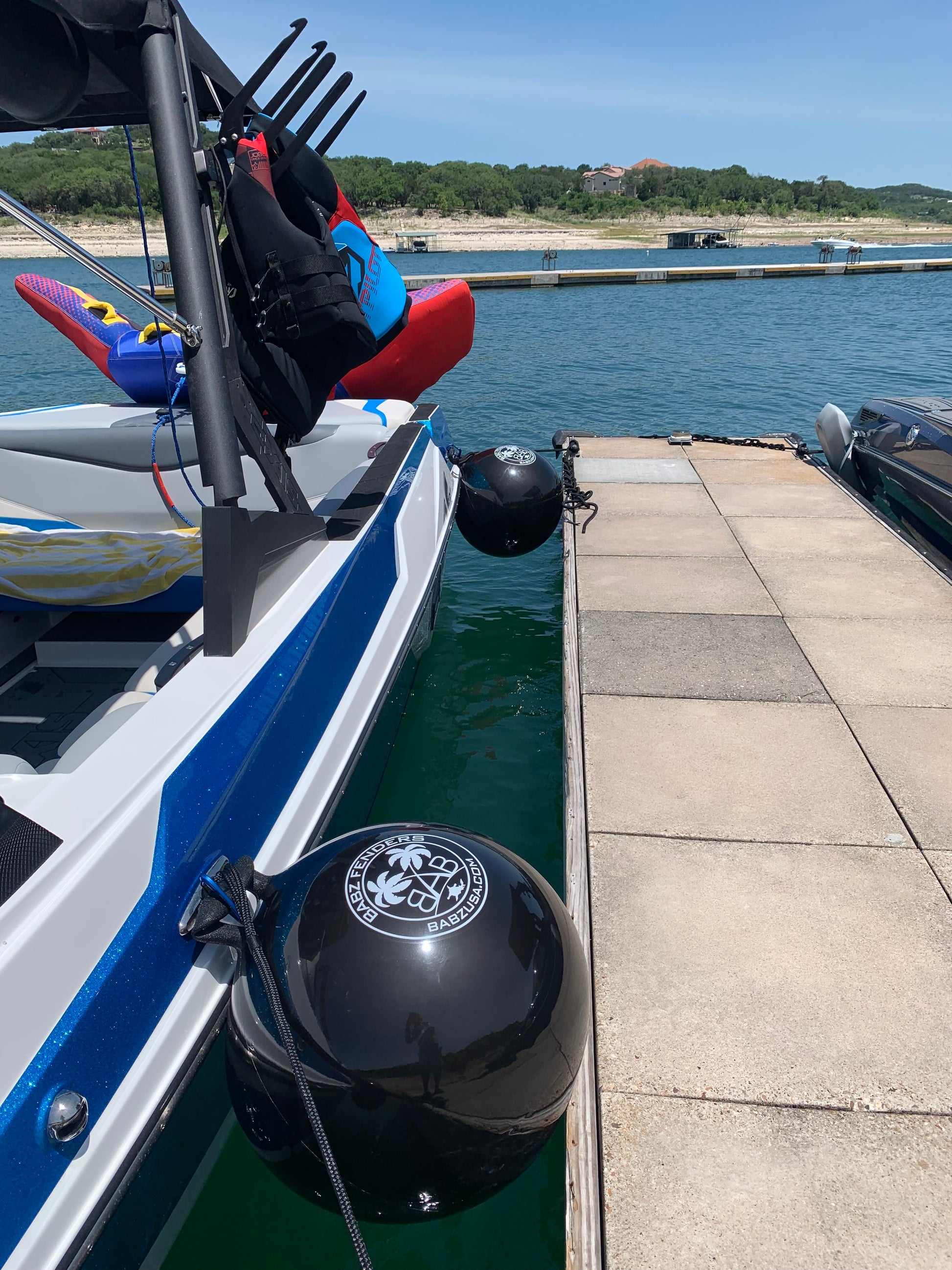 BABZ Classic Inflatable Boat Fender Bumpers (24", Black w/White Logo, Pack of 1)
