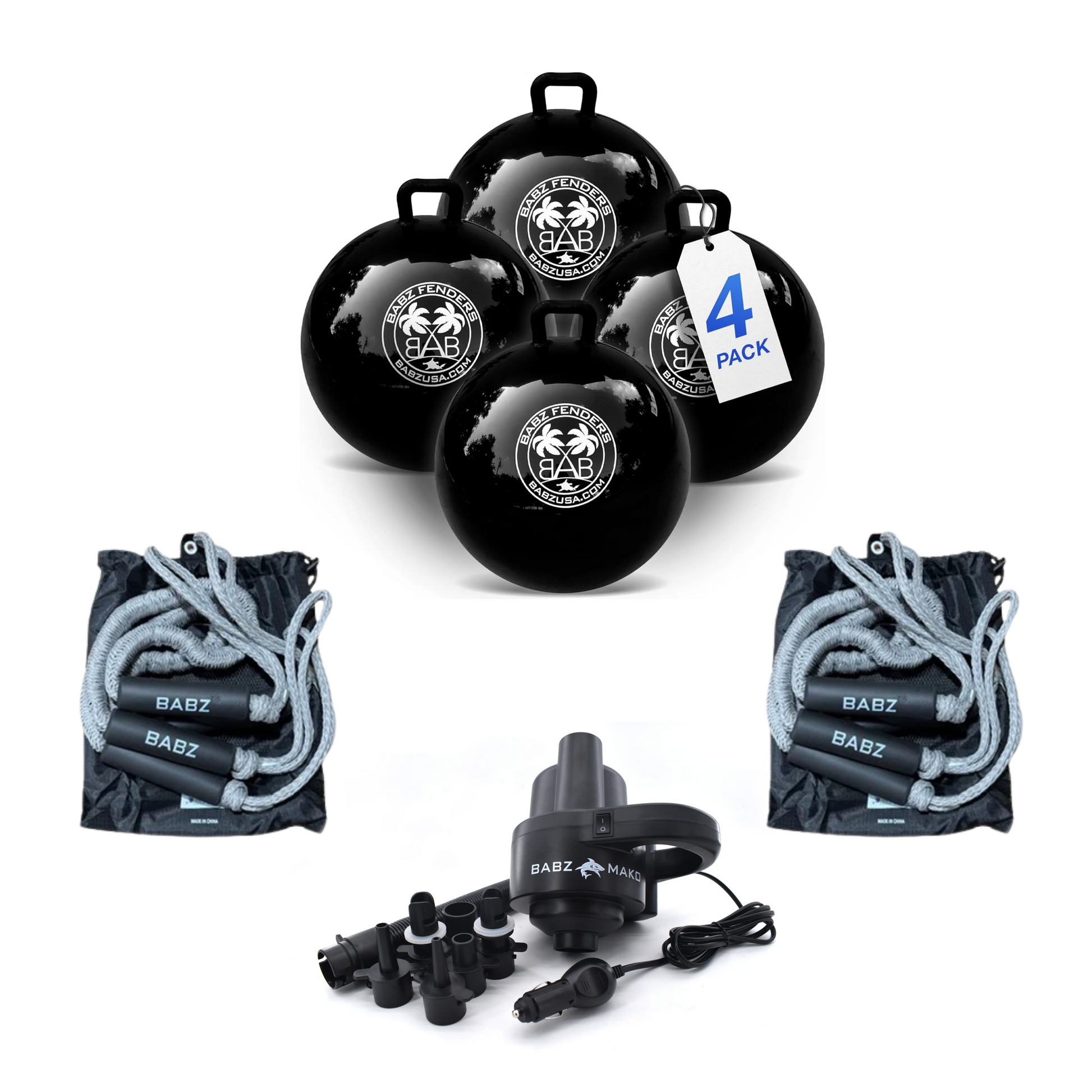 The ultimate bundle pack for everything you need to get going on the water. Includes 4 BABZ Classic Fenders, 1 Mako Air Pump, and 4 Premium Bungee Lines (4-5.5ft each).